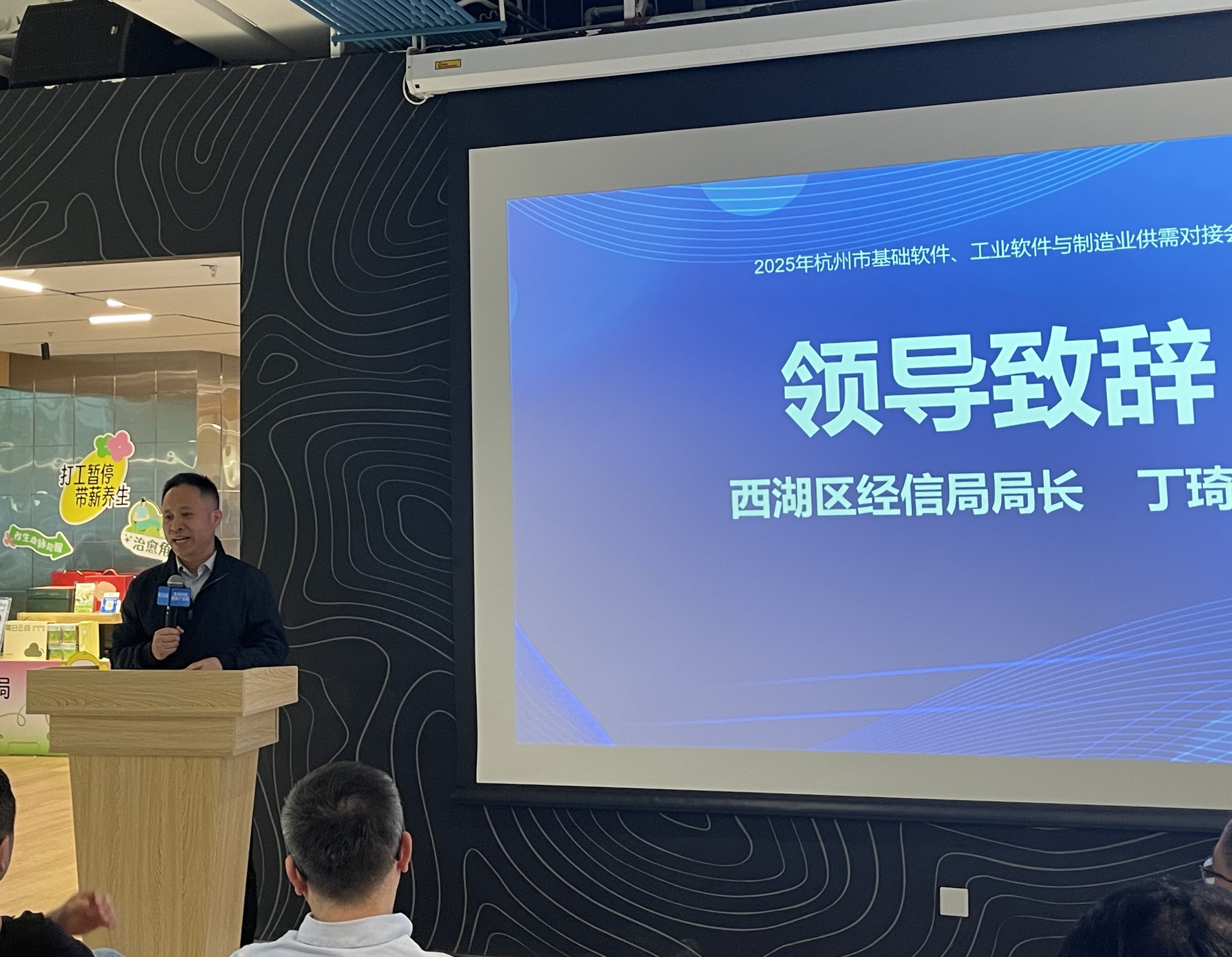 会议伊始,杭州市经信局副局长林昀作开场致辞,用一连串增长的数据展示杭州正朝着打造国际级软件名城的目标稳步迈进。他强调数据智能是杭州数字经济“双核驱动”战略的核心引擎,基础软件和工业软件仍是产业发展的“根”与“魂”,需以场景创新为抓手,优化产业生态,推动软件与制造业深度融合,助力企业数字化转型。西湖经信局局长丁琦伟介绍了西湖区在数据智能产业方面的布局与政策支持,从政策供给、场景开放、人才服务三端发力,为企业发展保驾护航。省经信厅软件处副处长李玮在总结发言中,以“四个协同”寄语行业:重点抓好省市协同、链群协同、供需协同、产教协同,推动基础软件、工业软件产业稳进提质、攀高升级。